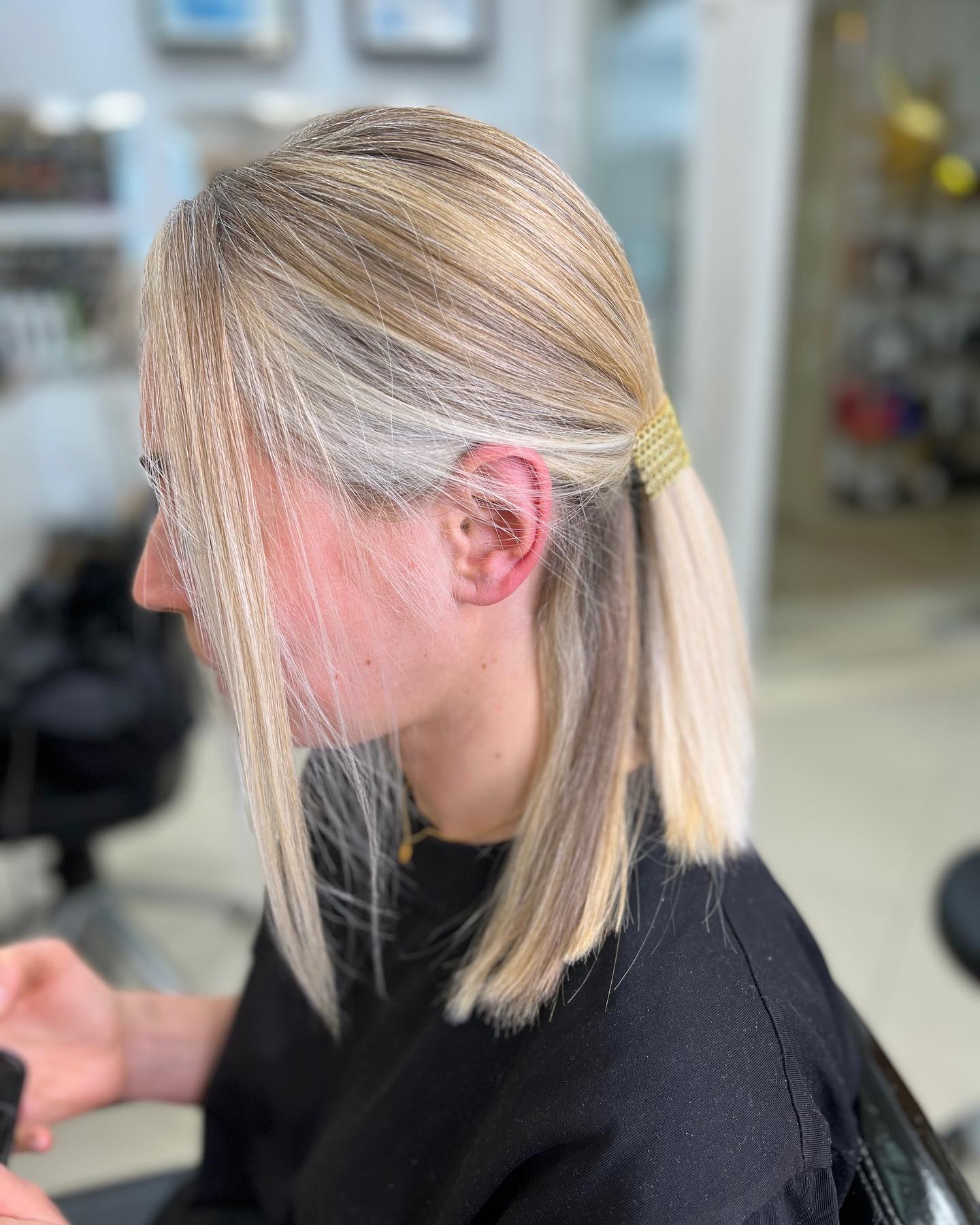 Осветление прядей вокруг лица. Эта техника фокусируется на обрамляющих лицо прядях в самых светлых блондинистых тонах, напоминающих о нордической красоте. Все дело в точности, использовании более светлых оттенков для создания воздушного сияния вокруг лица, при этом сохраняя остальные волосы более естественными или холодными.